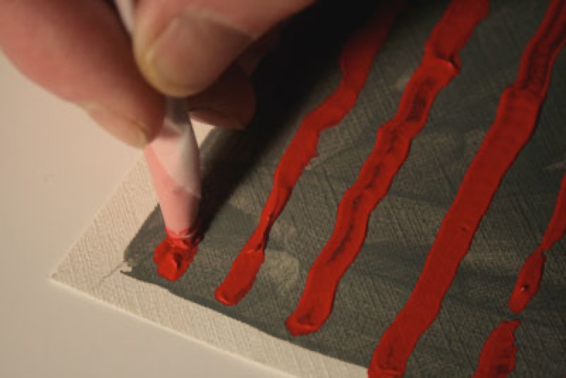 Adding three-dimensional lines is a totally original technique, consisting of squeezing color onto the painting surface with an applicator tip. However, you need good control because it is not easy to correct mistakes.