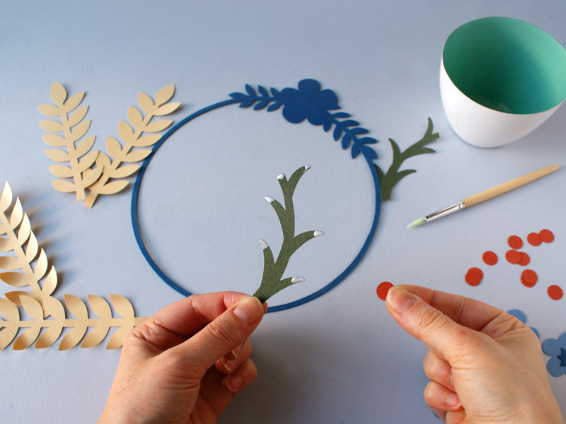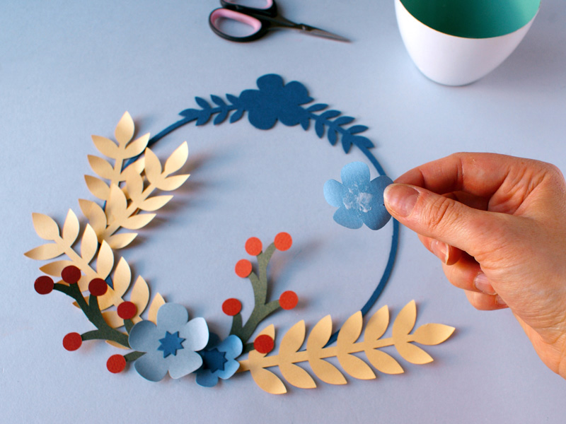 Create a wreath decorated with paper flowers. Perfect for decorating one of your walls, it'll create a retro, botanical feel.
