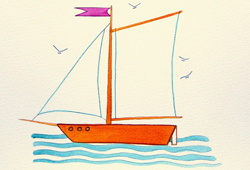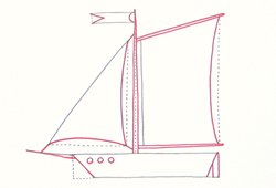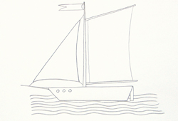 Start by building up the mast and hull of boat in pencil.