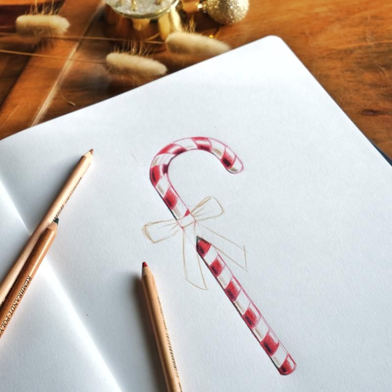 Today, the candy cane is no longer just a treat. It has become a true graphic icon, a decorative motif in its own right. Drawing it means extending this tradition, pencil in hand, taking the time to enjoy the process. And let’s be honest, it is a pleasure with zero calories, which certainly doesn’t hurt.