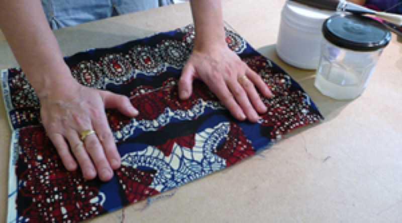 For some tiny pieces, for example for turned edges, you may use double-sided tape.