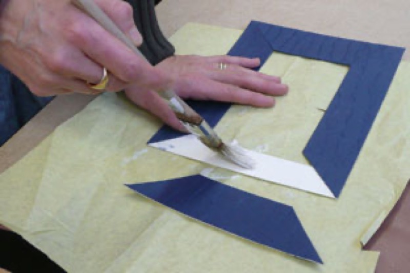 Glue the right side of the mat. Glue the decorated paper to the mat. Smooth and put under a press for 15 minutes.