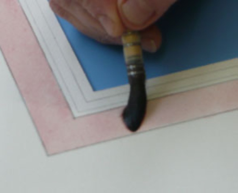 Embellish the mat with a delicate colored line? A classic framing element! Cut from colored paper, drawn or wash painted, the filigree line will increase the impact of your subjects, whether classic or contemporary.