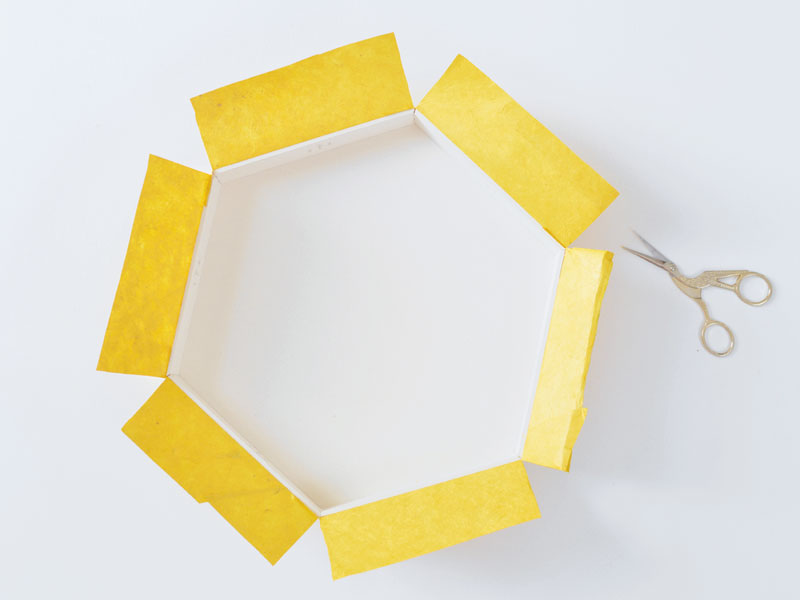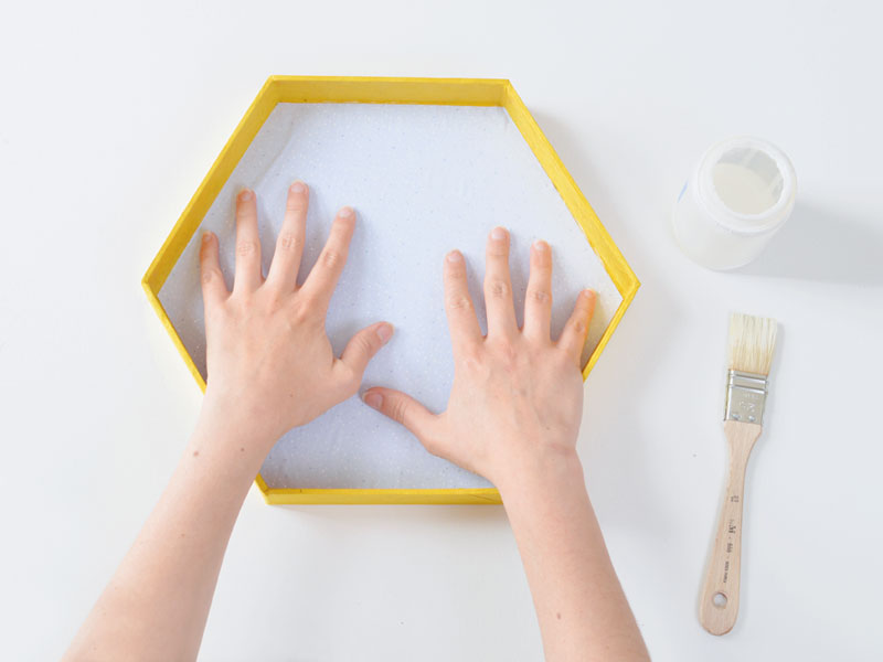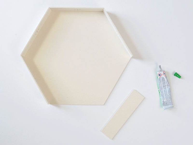 - A hexagonal piece of 3 mm wood pulp board measuring 15 cm on each side (Download the template)