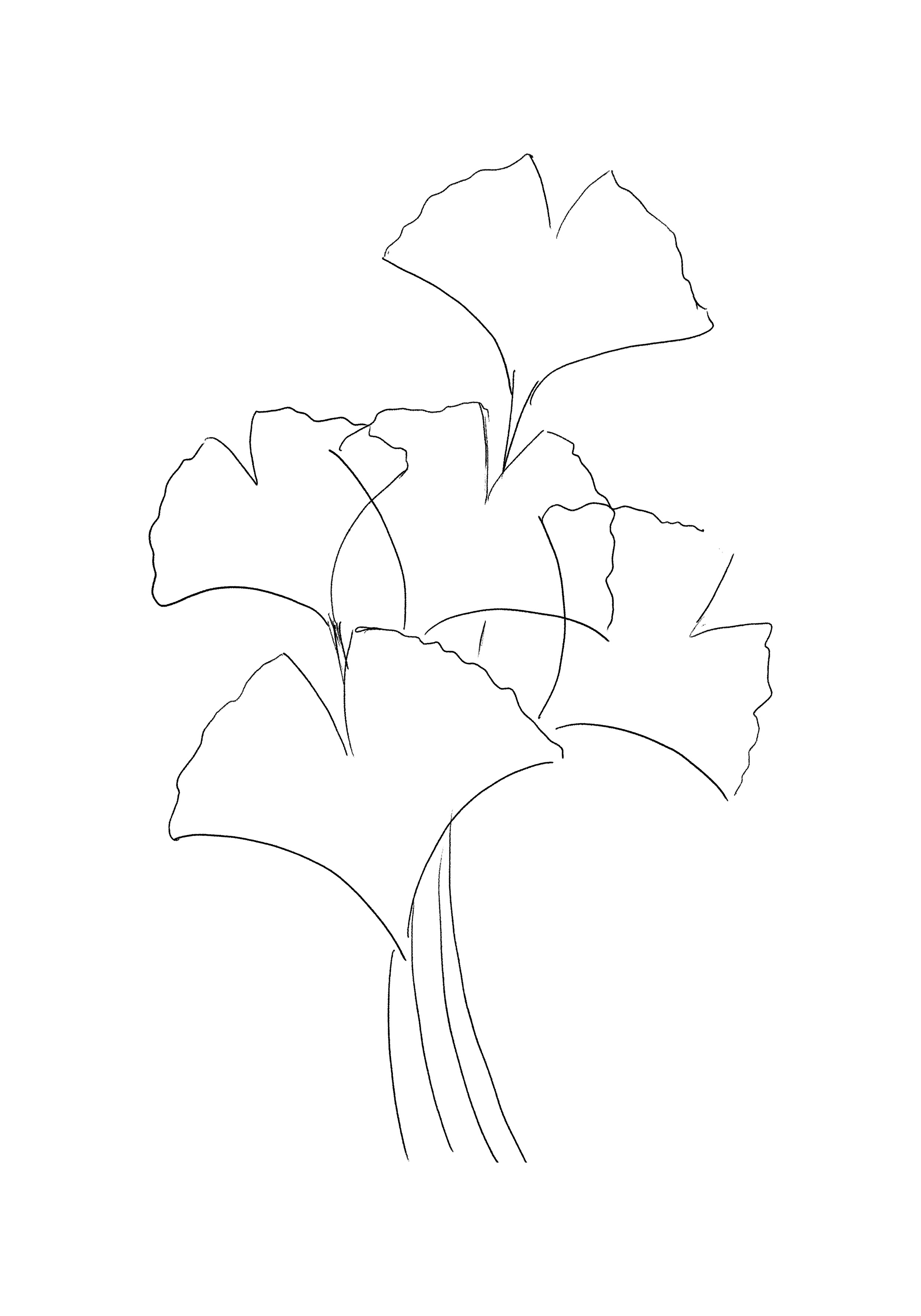 Once everything is dry, carefully erase the initial pencil sketch. Your ginkgo leaves now look light and luminous, balancing spontaneity with precision.