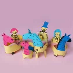 Make animals and delightful characters out of paper: simple cutouts and a few dabs of glue to create fantastic creatures!