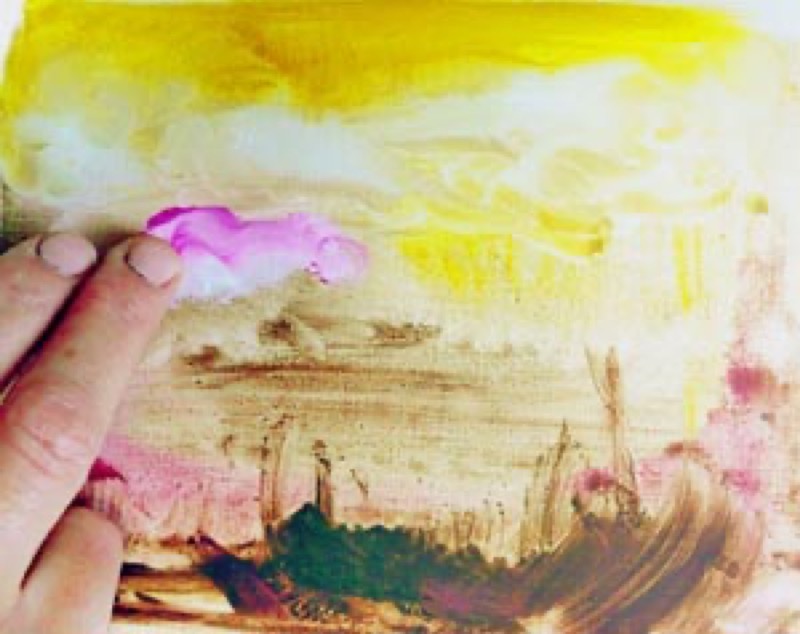 This involves applying a thin, irregular layer of paint over an existing layer. The perfect way to represent the downiness of clouds.
