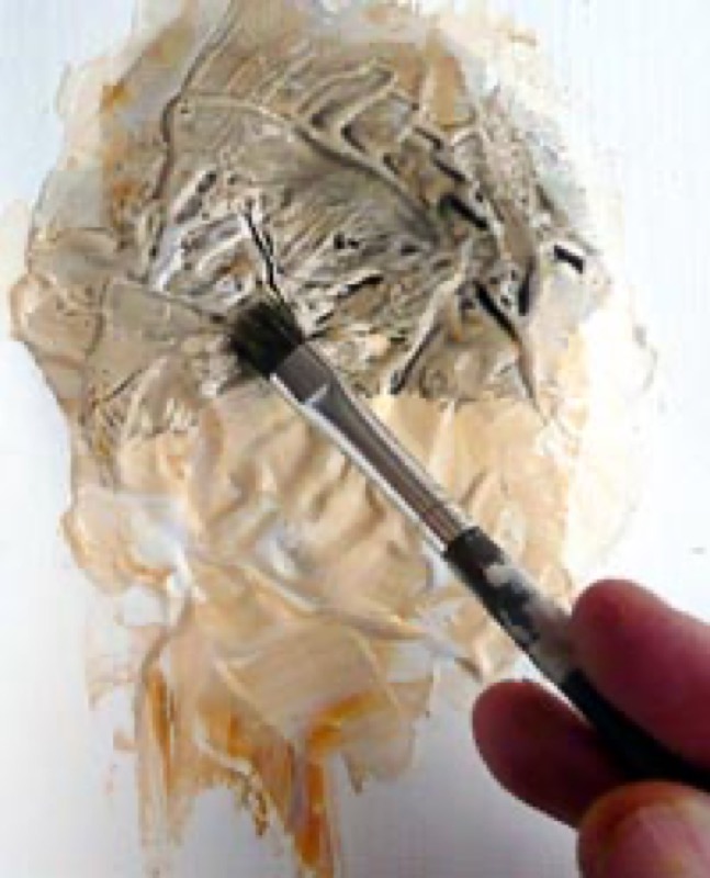 To create your glaze, mix color with a dab of a special synthetic glaze medium. Avoid using linseed oil: it will be too liquid, making the colors run on the support.