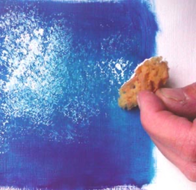 Synthetic sponge: because it is sturdier and stiffer, it produces fine, dense textures, perfect for creating foliage or hazy landscapes.