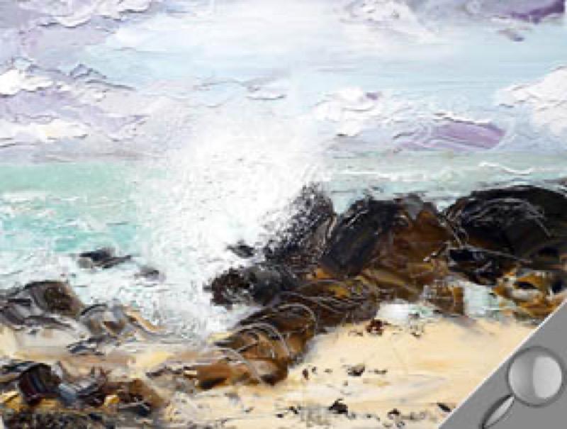 - Pencils and paintbrushes: 1 charcoal, 2 flat boar bristle brushes (Pebeo), 1 medium painting knife (Pebeo 3026), 1 Fine Touch Palette Knife (Talens 3007)