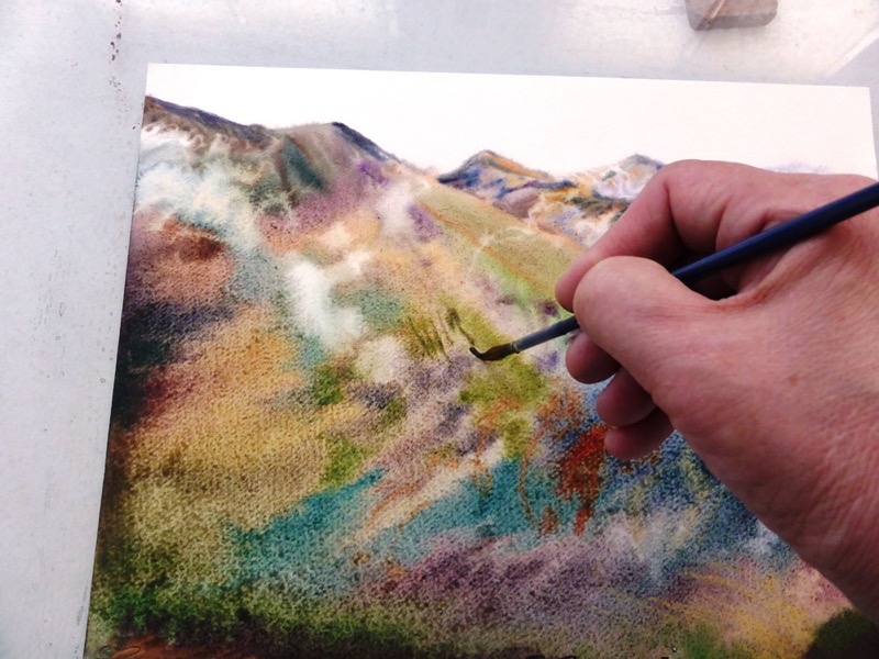 How to create a watercolour with an ephemeral atmosphere? Place a small sheet of paper on a Plexiglas sheet and create your first ever wet on wet watercolour with magnificent airy, cotton-like mists..